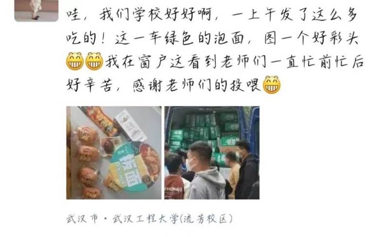 在突发的疫情下,学校配餐压力激增,学院辅导员积极参与学校送餐工作,一份份温热的盒饭,源源不断送到每一个封控学生手中,爱心餐暖胃又暖心。