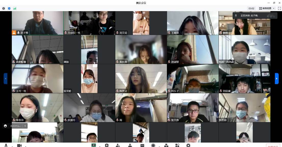 学院各班班主任组织线上班会,传达学校疫情防控各项政策,回复解答同学们的问题,引导学生不恐慌、不焦虑,做好疫情防护,时刻关注学生的思想动态。