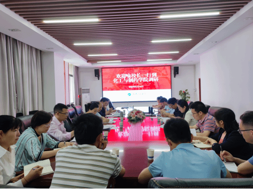 ,围绕学院本科培养方案修订、专业建设、师资队伍以及全国大学生化工实验大赛中南赛区选拔赛准备工作开展主题教育调研。学校主题教育调研联络组第五组副组长、教务处处长王海晖,党委宣传部副部长陈欣,教务处副处长于传浩,党政办公室主任科员刘静陪同调研。