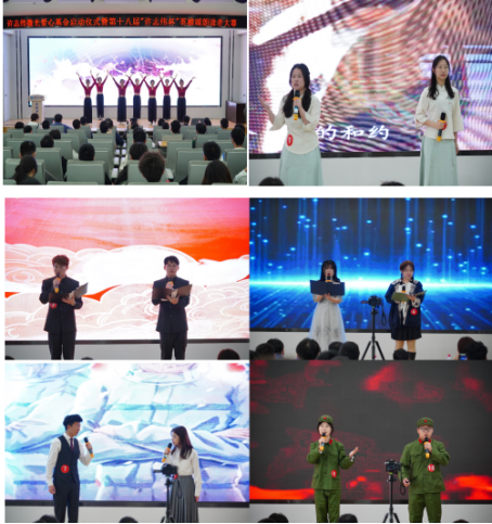 文体部带来的舞蹈《绒花》拉开了第十八届“许志伟杯”英雄颂比赛的序幕。第一轮比赛红日初“声”,选手们两两组队,围绕“英雄时代”“逆行者”“最美中国”三个专题进行情景剧朗诵,评委们分别打分决出进入决赛的六名选手进行最终的较量。
