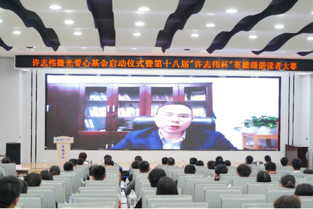 本网讯(通讯员 季凯)在深入学习宣传贯彻党的二十大精神之际,在全校上下深入开展学习贯彻习近平新时代中国特色社会主义思想主题教育的启动之时,4月14日上午,学校举办许志伟微光爱心基金启动仪式暨第十八届“许志伟杯”英雄颂朗读者大赛。学校正校级干部、校基金理事会会长叶芃,许志伟家属以及许志伟同班同学99级化学工程5班黄君涛、王治国、金晓岚、张卫平受邀出席活动。校党委宣传部、党委学工部、党委研究生工作部、校团委、校友工作与合作发展处、91视频