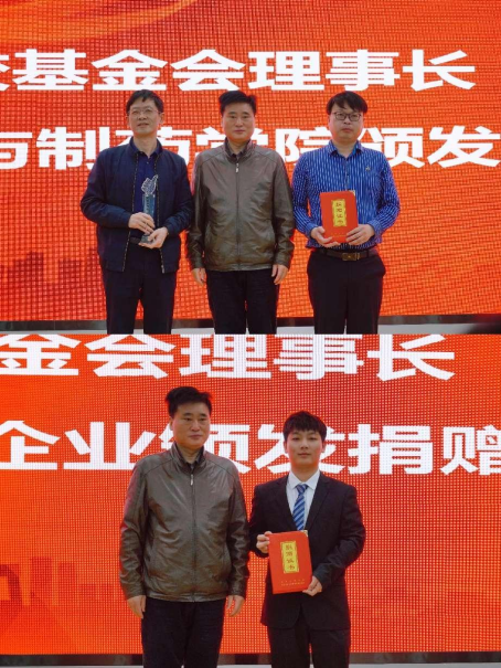 党委书记汪铁林、校友代表王治国及爱心企业颁发捐赠证书。