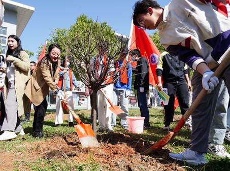 积极参加学校举办的植树节主题活动,学院党委副书记周丹、全体辅导员以及许志伟志愿服务队代表共植青年林,共创未来情。