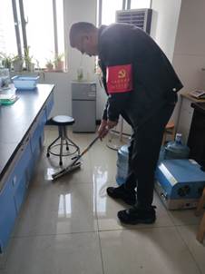 学院研化学工程党支部的同学们也发起了实验室清洁活动,从自己的实验区域出发,纷纷带头做好卫生服务。