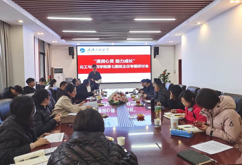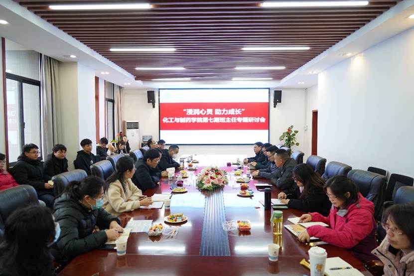 在大化工楼605会议室举办“浸润心灵、助力成长”第七期班主任座谈会,学院党委书记汪铁林、党委副书记周丹、全体班主任、辅导员参加会议。