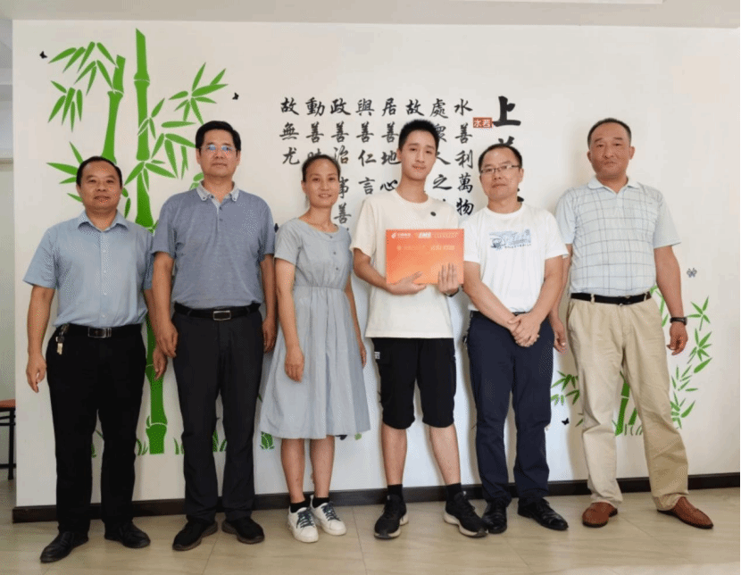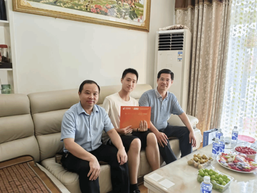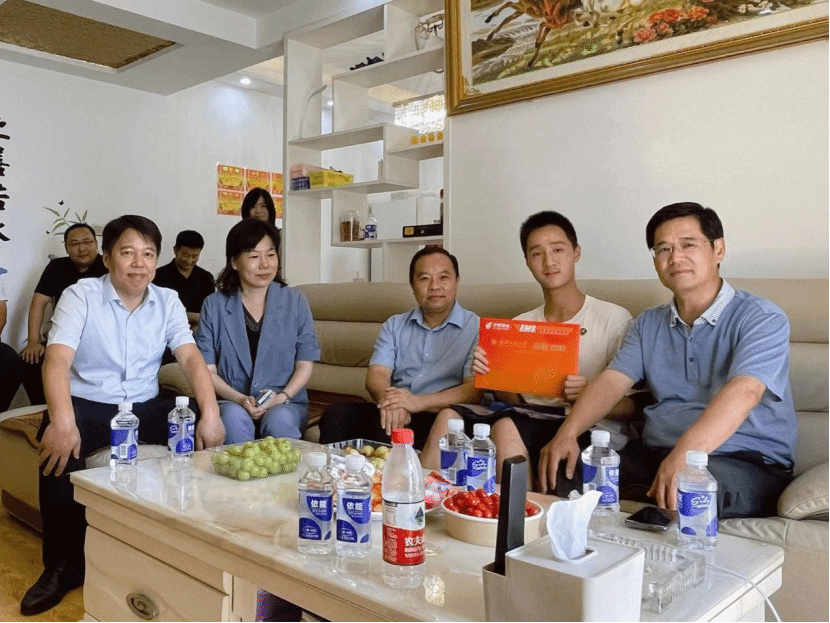 本网讯(通讯员 周丹)7月27日下午,校党委副书记、校长王存文赴黄陂,将学校2023年首封普通类本科生录取通知书亲手送交给新生张典同学,并为学生送上了学校大礼包。张典同学以594分被录取为91视频