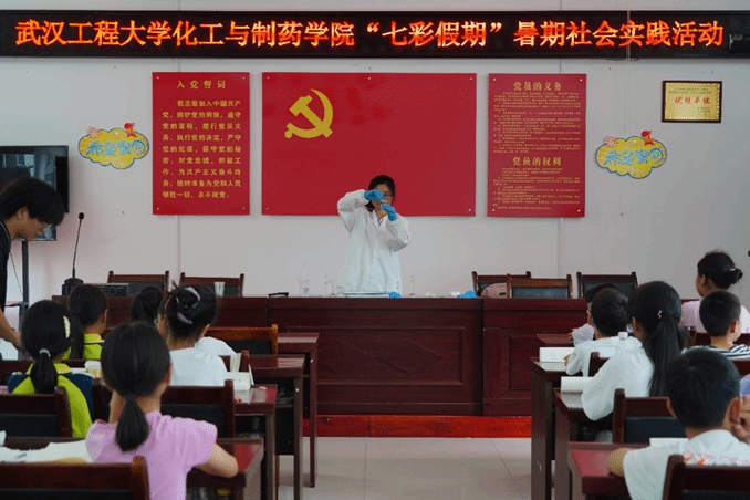 为助力留守儿童关爱保护,共同缔造美好家园,实践团成员第一站来到李庙镇全家湾村,在党员活动室开展“趣味化学”小课堂活动,为留守儿童们带来了与生活息息相关的趣味化学现象科普,帮助孩子们在科学知识中探索自己心中的大学梦、科学梦。