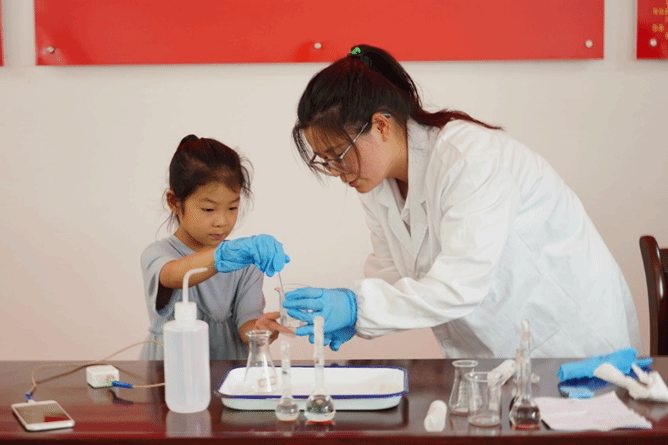 弘扬科学家精神,涵养优良学风,营造创新氛围。本次“趣味化学”小课堂带领孩子们亲身体验了化学的奇妙,极大的激发了儿童探索科学的热情。大手牵小手,实践团成员用趣味化学科普的方式关爱留守儿童,贡献着化药学子的青春力量。
