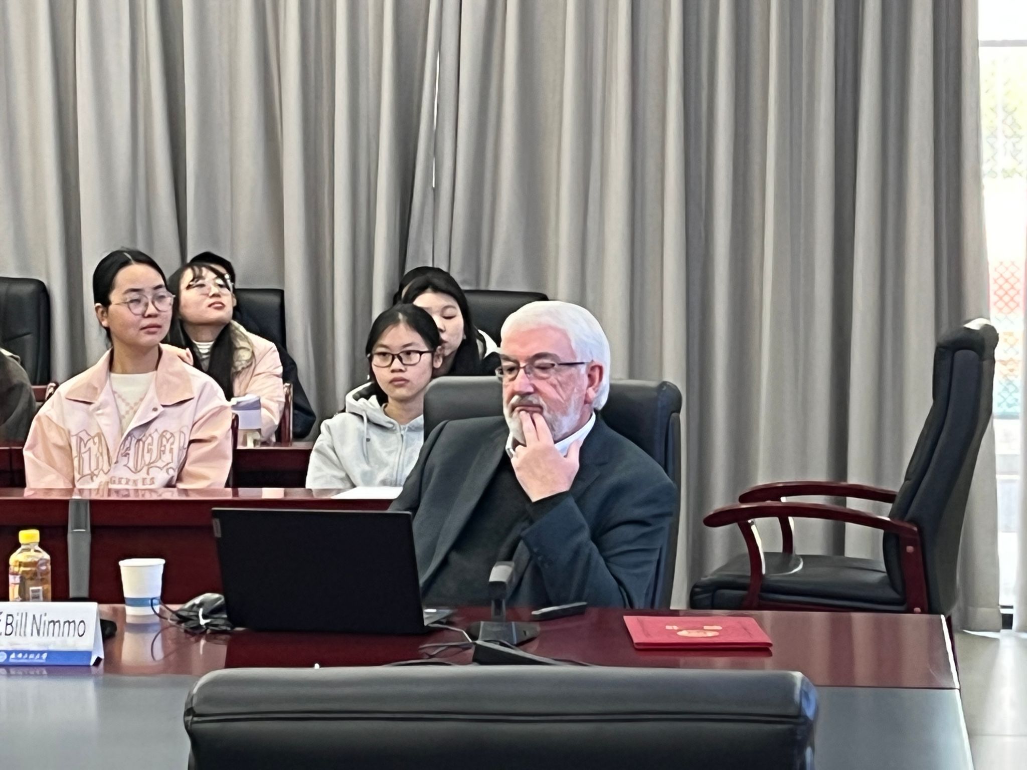 报告结束后,易群教授分享了他在谢菲尔德大学的访学经历,介绍了该校的人文特色和著名建筑。Nimmo教授与现场师生就中试研究、二氧化碳捕获和光伏发电等议题进行了深入讨论。互动环节中,Nimmo教授展现了对科研的热情、严谨的学术态度和创新精神,激励年轻学者在科研道路上不断进步。